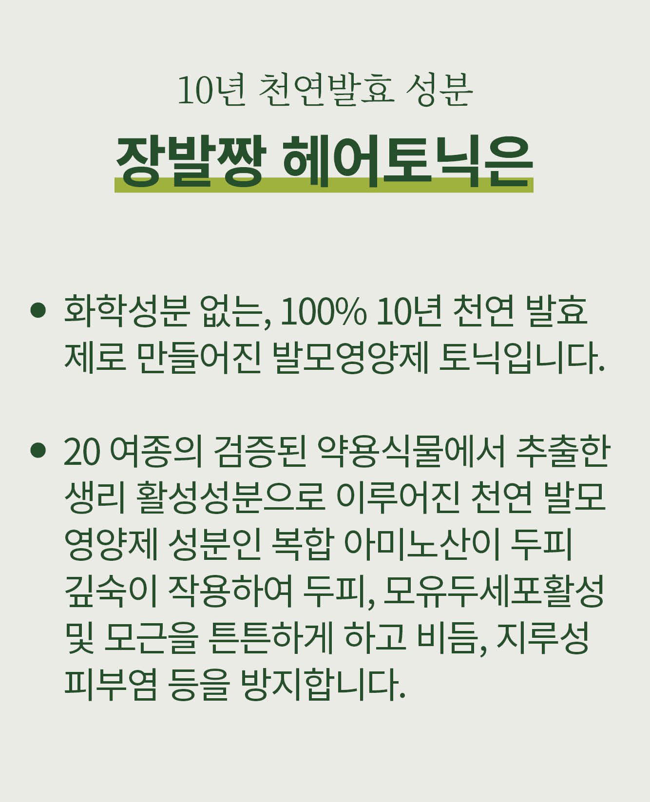- 유효생리 활성성분을 증가하고 고분자를 저분자화해서 흡수율을 높인 모발영양제.