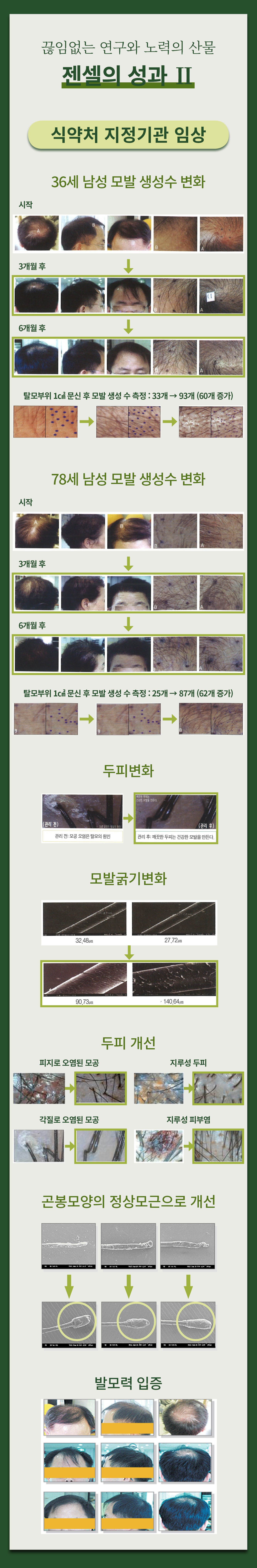 젠셀은 모발에 필요한 에너지와 산소를 공급하여 세포를 재생하고 윈트 시그널링을 활성화시켜 머리카락이 나게하는 근본적인 치료를 하기 때문에, 모발이 지속적으로 자라납니다.